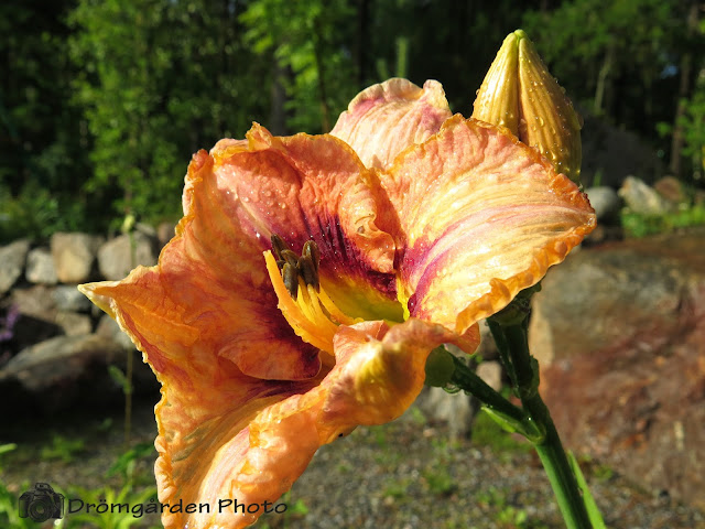 Dagliljan fotograferad i regnet när solen är fram samtidigt!